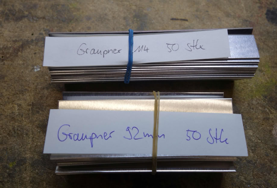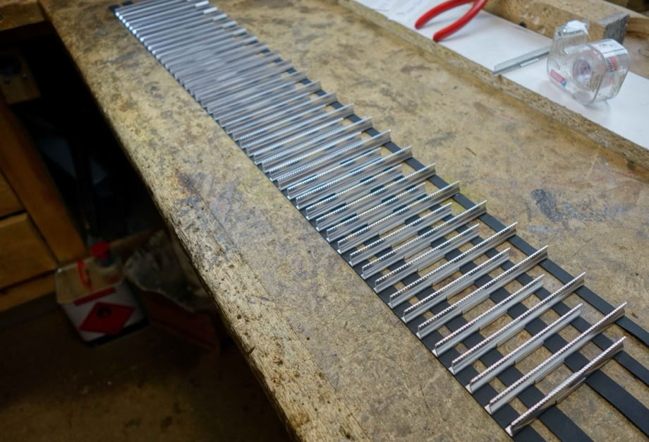Das "Rohstangenmaterial" ist übrigens schon perfekt angeschliffen und penibelst entfettet. Es empfiehlt sich deswegen, diese Arbeit mit Gummihandschuhen zu machen.