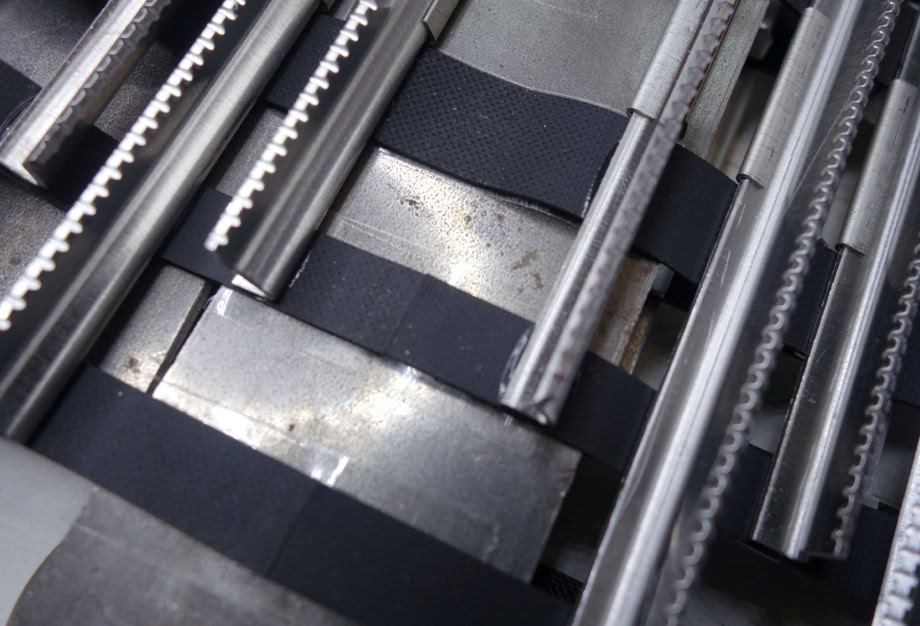 ..um dann auf einer Flachstahlunterlage alle 5 Bänder, sauber aneinander zu führen. Da darf NULL Spalt sein!