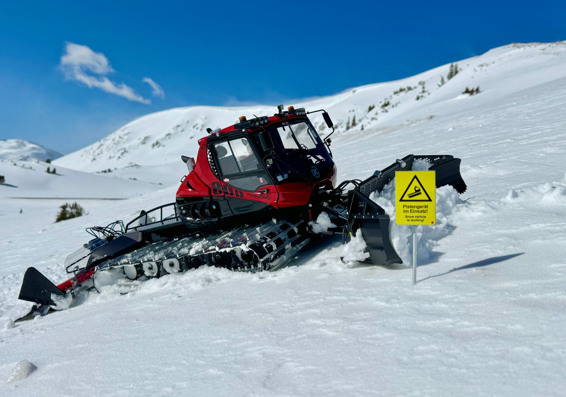 Das neueste Topmodell von Kässbohrer, der PistenBully 800 SIMPLY RED wurde offiziell am 1. März 2023 in Sölden in einem Live-Stream vorgestellt. Er ist voll auf Schubleistung und optimale Pistenpräparierung ausgelegt und besitzt ein Laufrad mehr als bisherige PistenBullys. Wie üblich geisterten bereits vorher Bilder des PB800 als Erlkönig in Camouflage und später sogar ungetarnt im Internet herum.