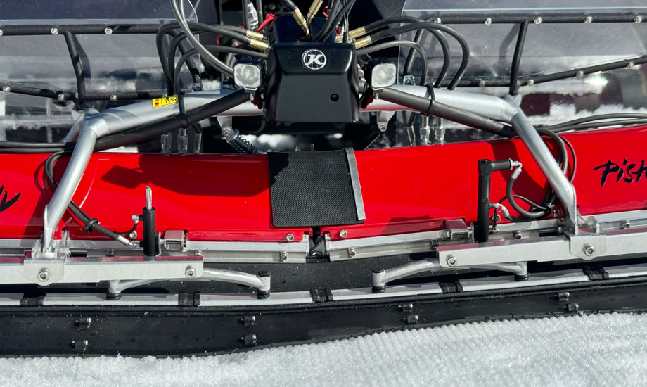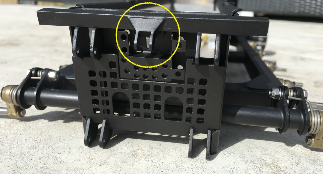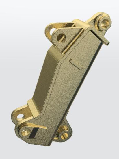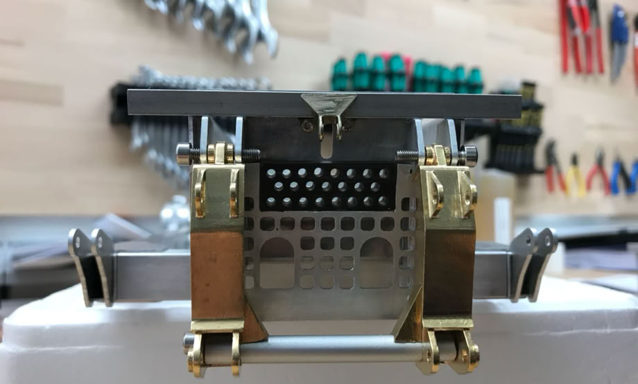 At the PistenBully 600 and 400 Park (not ParkPro!) the front attachment carrier is mounted on these parts. They fit for the Pistenking chassis. The left and right part are needed as well as a 6 mm brass tube to connect both parts at their lower end.