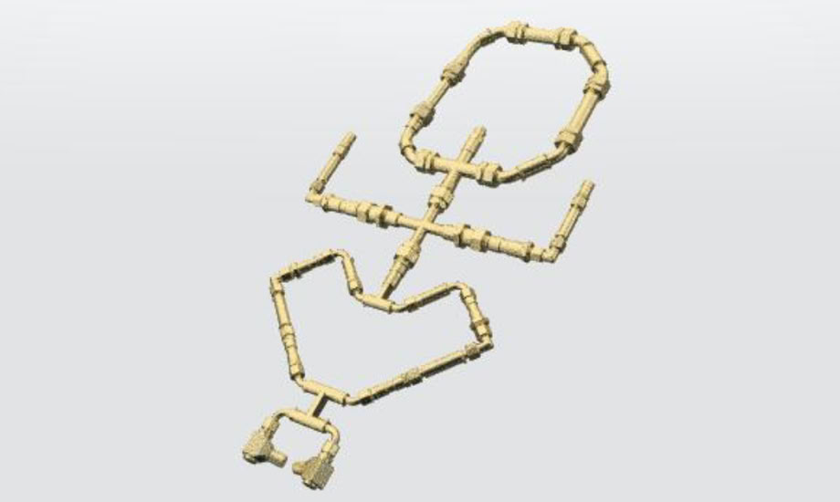 With this 3D-printed part, the hydraulic connectors (dummy) for the front Pistenking equipment carrier can be built true to the original. Brass tubes and silicone strands are also required.